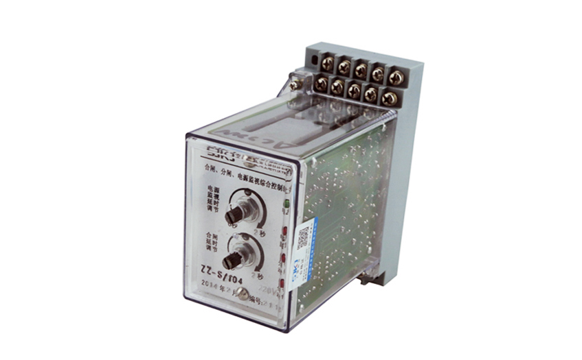 ZZ-S-25分闸、合闸、电源监视综合控制装置可连续监视断路器中的直流电源及整个跳闸回路。当直流电源消失、跳闸线圈及引线发生故障,继电器经0.3秒延时返回并通过它的触点发出报警信号。